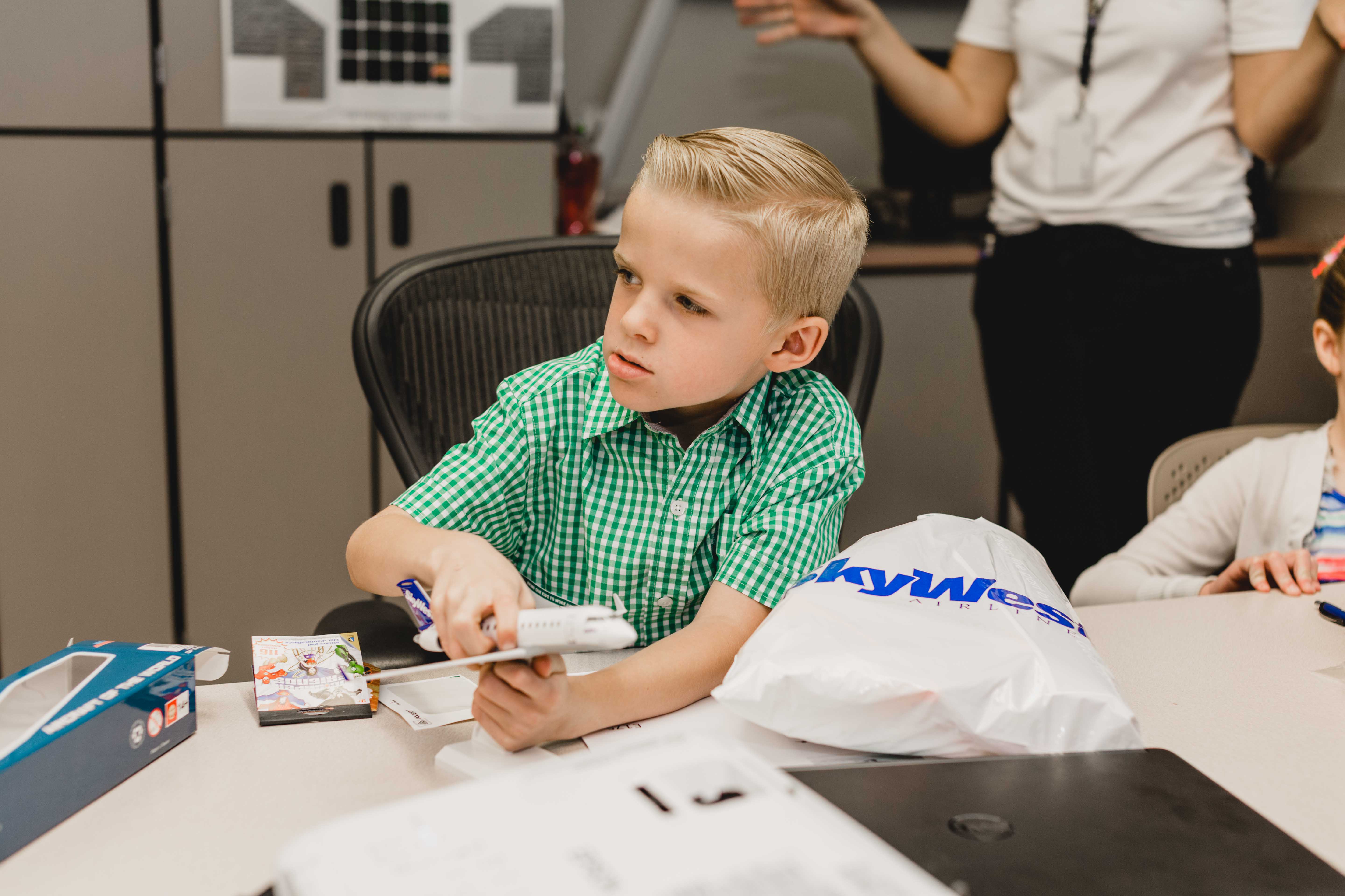 In Salt Lake and Denver, the kids got some time in the flight simulators, getting a special look at what it takes to fly a SkyWest jet. The kids in Salt Lake also received a VIP tour of the maintenance hangar and got to test some of their skills in the cabin trainer.