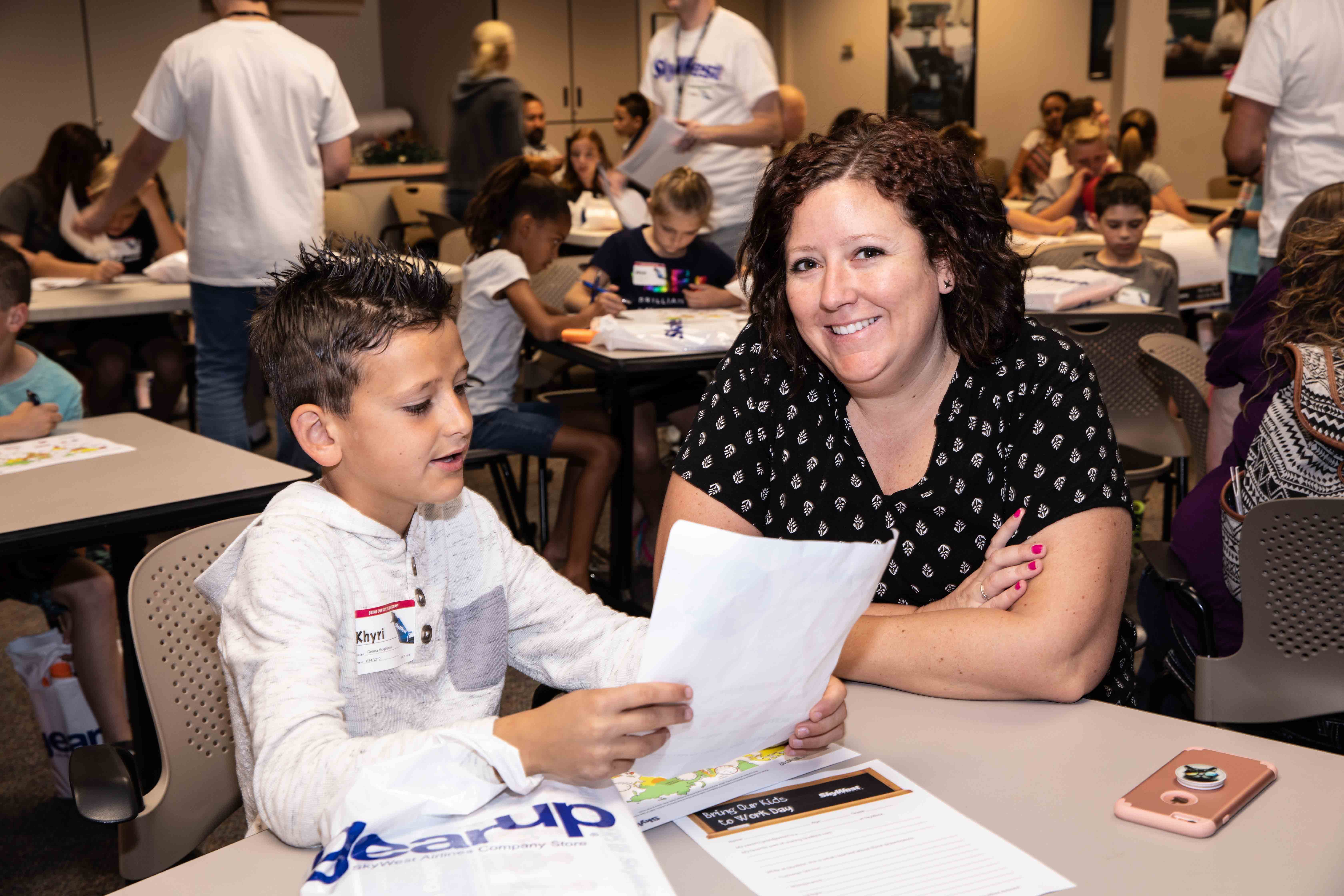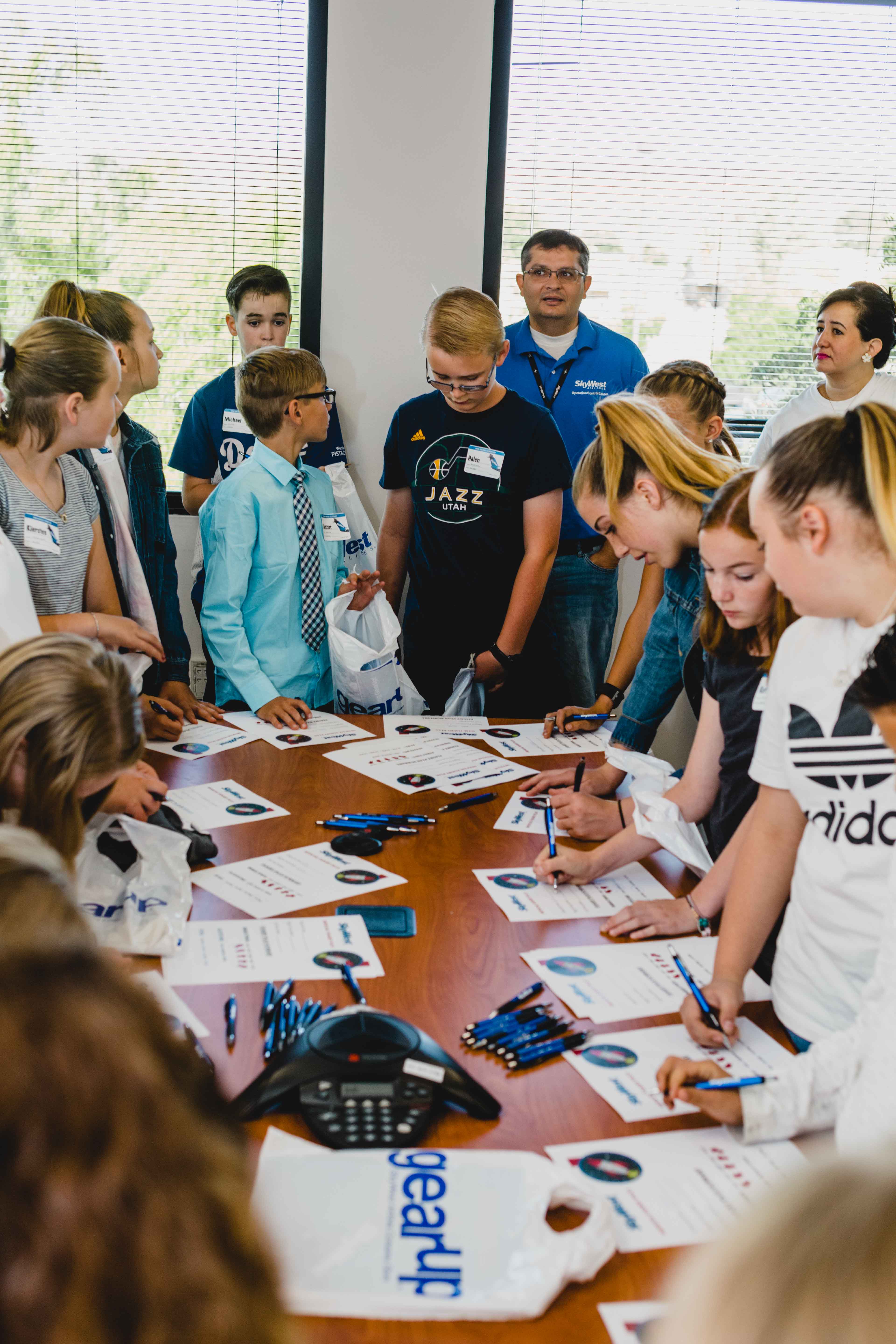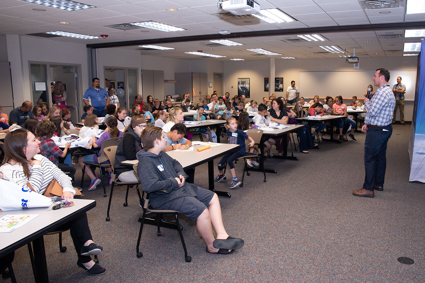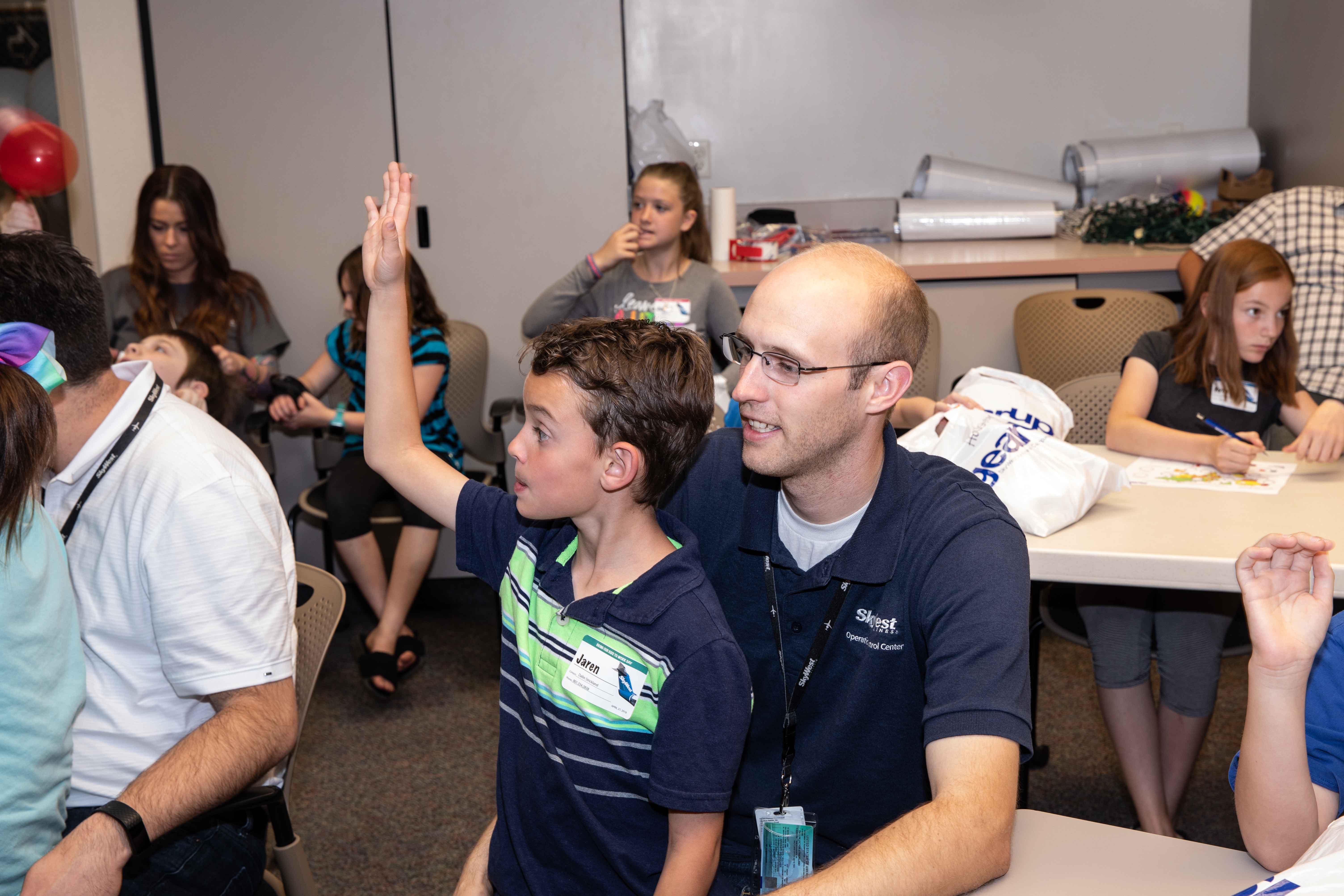 At HDQ, nearly 80 future flyers got some hands on experience, including creating a flight plan for a rocket and then launching it, getting a 3D look at what it’s like to be in the flight deck and learning how engine thrust works. They also learned the ins and outs of marshalling an aircraft and had their inflight safety knowledge tested. The event concluded with a special message from SkyWest COO Mike Thompson, who noted that of all the important work SkyWest’s 13,000+ professionals do, none is more important than the work they do as parents.