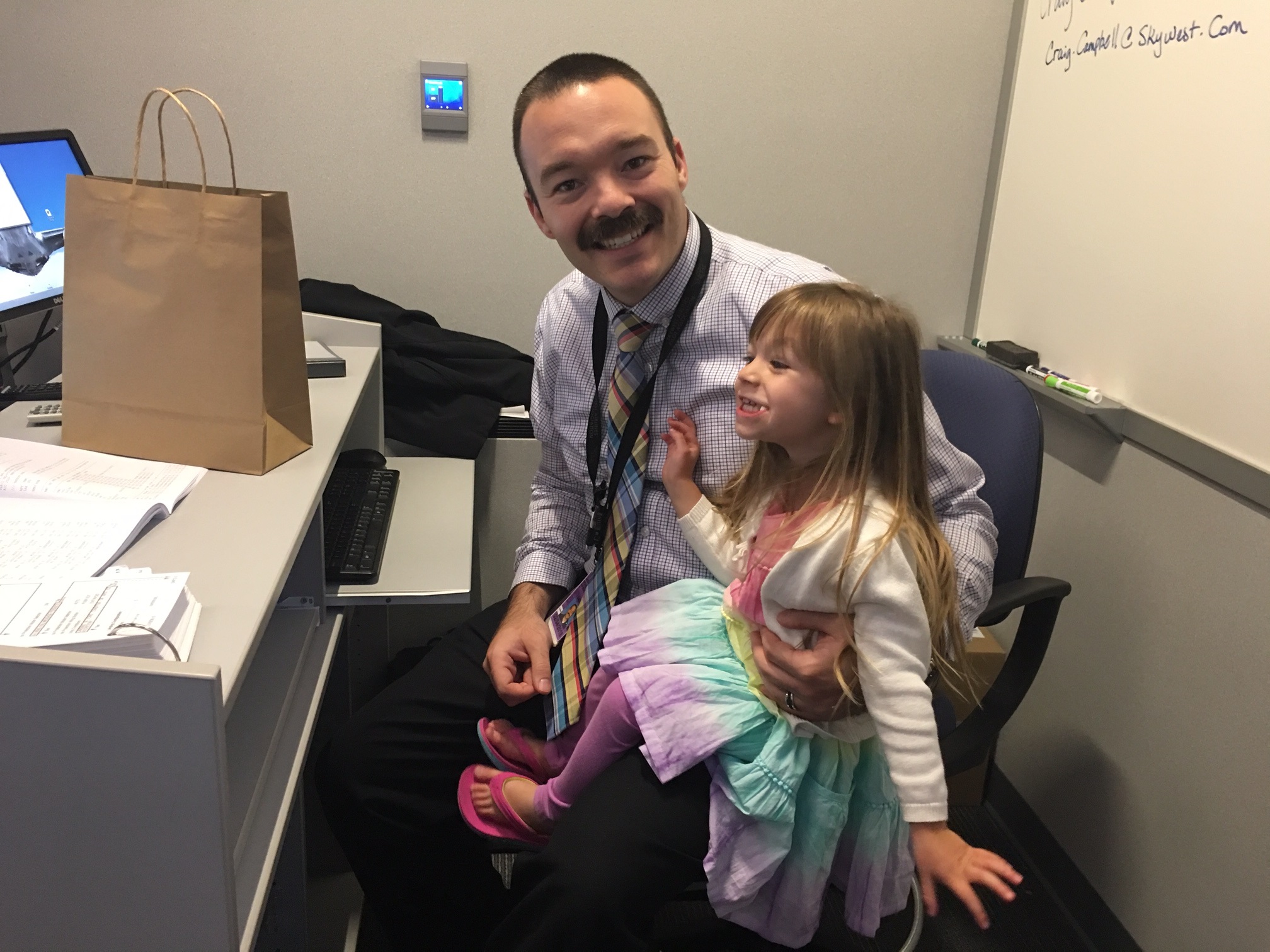 LAX Captain Louis Yu was able to bring his wife and two daughters to the event held at SkyWest Headquarters – the family left with a lasting impression.